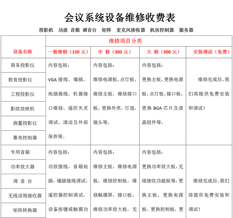 5.维修完成,开具保修单,对原部位且性质相同故障免费保修90天。以下问题不在保修之列(如动物破坏,进液,电源问题,私自开机等人为因素不予保修)。